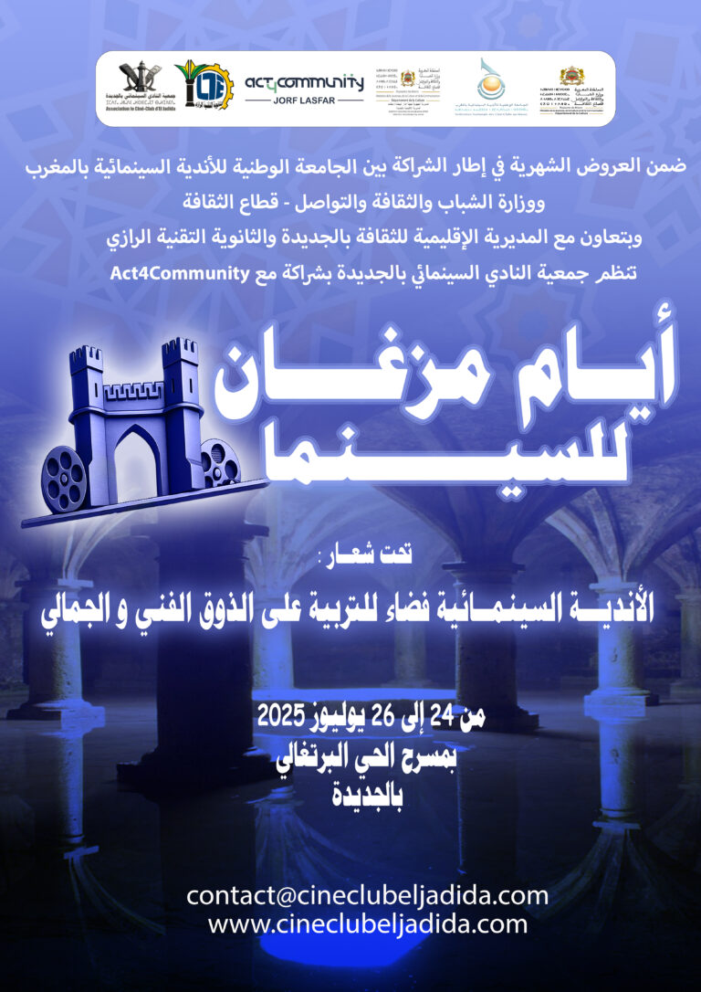 مدينة الجديدة، الحاضنة للتاريخ والمتطلعة للمستقبل،  والمطلة على ضفاف المحيط الأطلسي، شهدت ما بين 24 و26 يوليوز 2025 حدثا فنيا وثقافيا استثنائيا، أعاد وهج السينما إلى فضائها العام، وأحيا في النفوس شغف الصورة وقدرتها على ملامسة العمق الإنساني، وذلك من خلال الدورة الأولى من تظاهرة “أيام مزغان للسينما” التي أختير لها شعار “الأندية السينمائية فضاء للتربية على الذوق الفني والجمالي”، والتي نظمتها جمعية النادي السينمائي بالجديدة، بشراكة مع مؤسسة ACT4COMMUNITY، في إطار البرنامج الشهري للشراكة الوطنية بين الجامعة الوطنية للأندية السينمائية ووزارة الشباب والثقافة والتواصل – قطاع الثقافة، وبتعاون فعال مع المديرية الإقليمية للثقافة بالجديدة والثانوية التقنية الرازي.